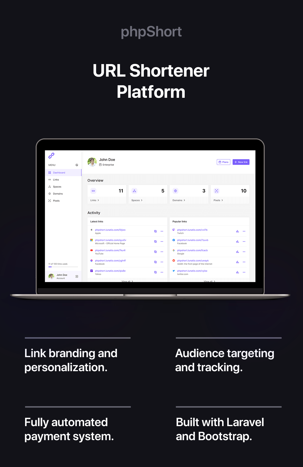 phpShort - URL Shortener Platform Download Free
